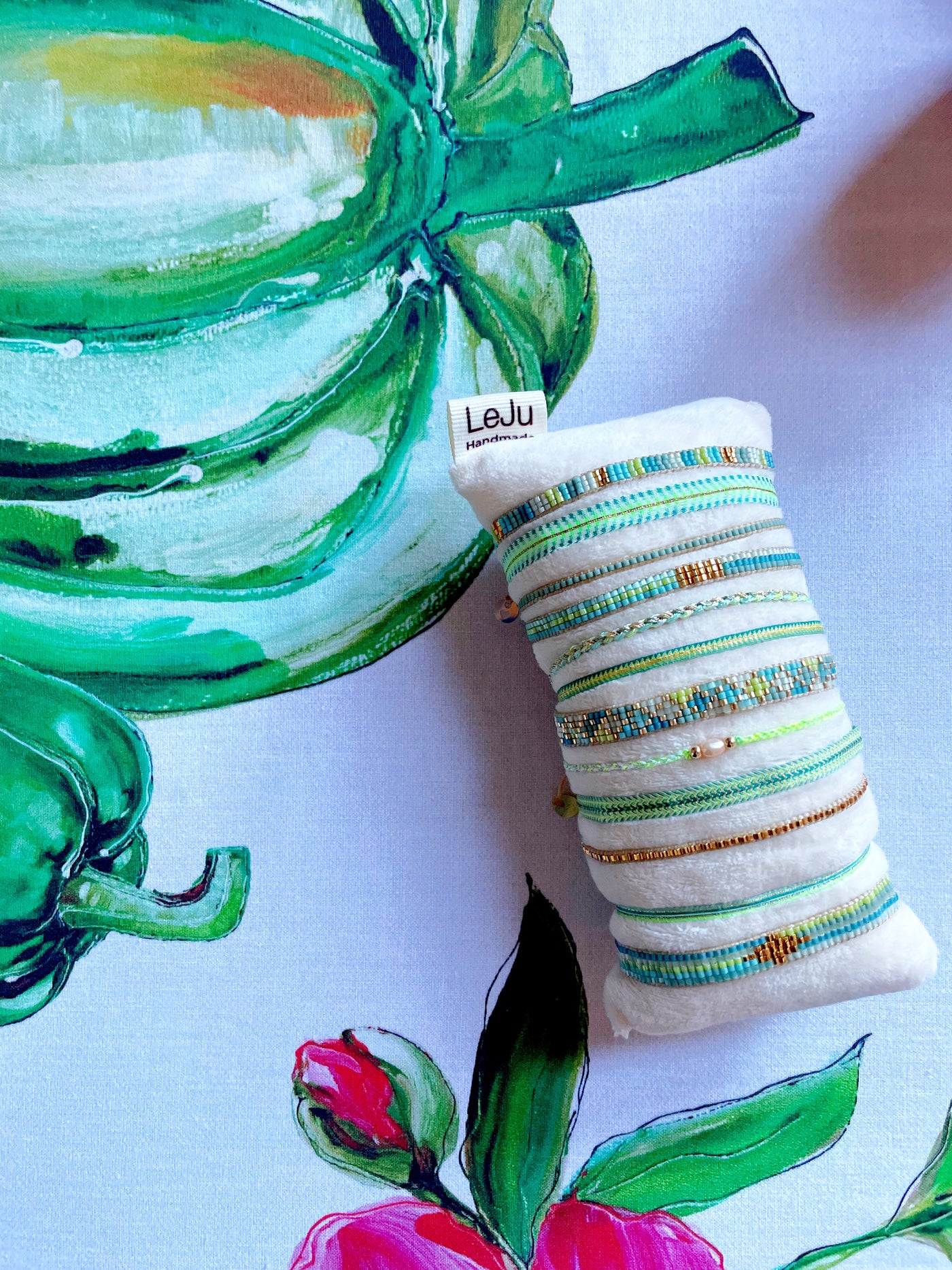 Alle LeJu sieraden worden met de handgemaakt in Colombia. Alle metalen die gebruikt worden zijn van Sterling Zilver, Brons, 14K Goud en Rose Gold Filled. Alle armbanden zijn handgewoven van Polyesterdraad en Japanse glaskralen.